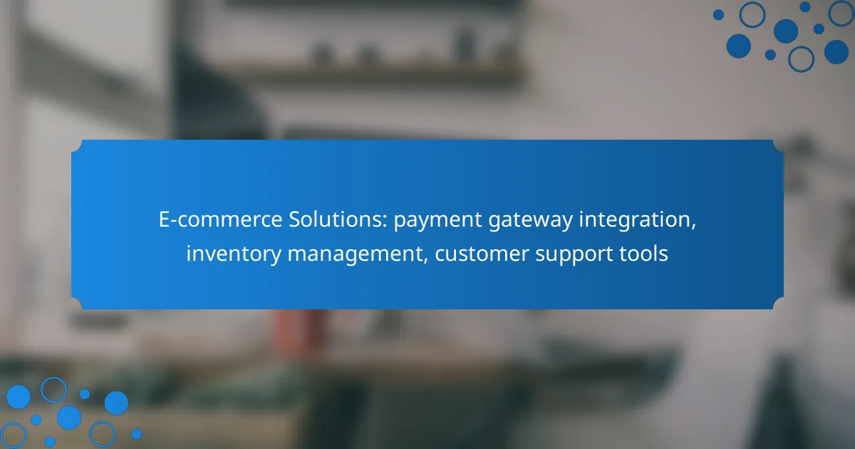 In the competitive landscape of e-commerce, effective payment gateway integration, robust inventory management, and efficient customer support tools are crucial for success. Leading payment gateways like Stripe and PayPal provide diverse features tailored to various business needs, while inventory management software enhances operational efficiency. Additionally, customer support tools play a vital role in ensuring timely assistance, ultimately boosting customer satisfaction and loyalty.