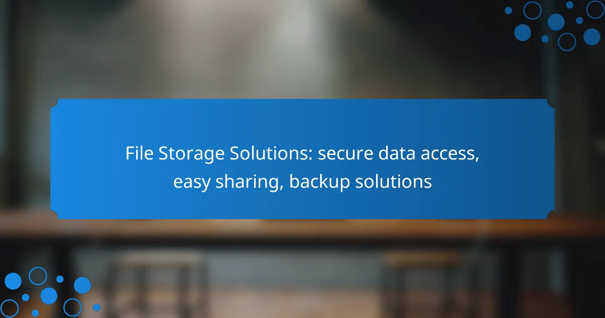 File storage solutions provide essential features such as secure data access, seamless sharing, and dependable backup options, making them vital for both individuals and businesses. With options like Dropbox Business, Google Drive for Work, and Microsoft OneDrive for Business, users can choose the service that best fits their needs while ensuring their data remains protected and easily accessible.