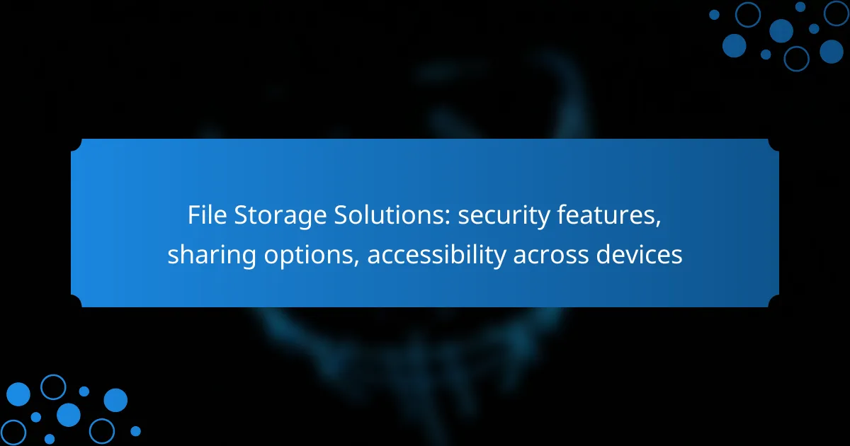File storage solutions are essential for managing digital data, offering a blend of security features, sharing options, and cross-device accessibility. With options like Dropbox, Google Drive, and Microsoft OneDrive, users can choose platforms that best fit their needs while ensuring their information remains protected and easily shareable. These solutions utilize encryption and authentication to safeguard data, while also providing collaborative tools that enhance teamwork and productivity.