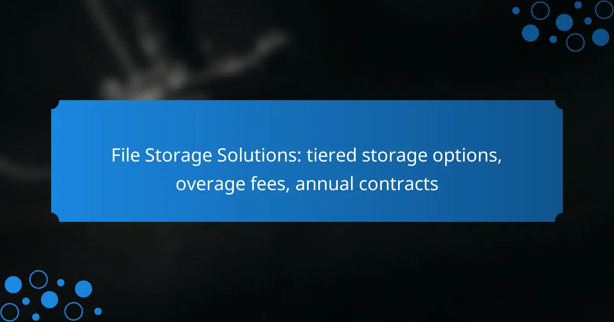 When selecting a file storage solution, it’s essential to consider tiered storage options, overage fees, and contract terms. Tiered storage allows users to optimize costs by categorizing data based on access frequency, while overage fees can significantly affect budgeting if storage limits are exceeded. Understanding these elements will help you choose a service that aligns with your needs and financial constraints.